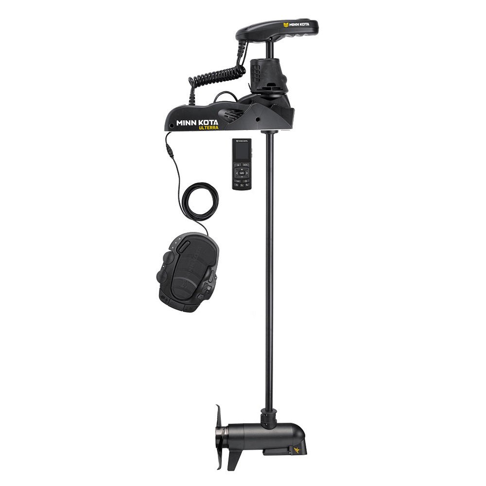 Ulterra 112 Trolling Motor with Wireless Remote – MEGA Down Imaging – 36V – 112LB – 60″Ulterra’s Auto Stow/Deploy and Power Trim have been helping anglers make more out of their days on the water for years. Now this easy-to-use motor has been completely reimagined to handle even tougher abuse. You can stow, deploy, and trim Ulterra from the remote or the foot pedal, meaning you never have to touch your motor again. With a programmable foot pedal, re-engineered motor, and mount, it has more advanced GPS functionality than ever.Auto Stow & DeployStow or deploy Ulterra just by pushing a button on your wireless remote, foot pedal, the One-Boat Network App, or Humminbird fish finder.Power TrimTrim Ulterra up or down at the push of a button — on either the foot pedal, the wireless remote, the One-Boat Network App, or a Humminbird fish finder. Adjust to changing fishing conditions without reaching down to your trolling motor.Advanced GPS Trolling SystemThe most-trusted navigation system in fishing. Ulterra uses GPS to control your trolling motor with unrivaled features that keep you on the fish. Set Spot-Locks, record paths, control speed and steering, and more. Minn Kota makes boat positioning and controls automatic, and you can take command from the easy-to-read LCD screen of Ulterra’s wireless remote.Spot-Lock with JogSpot-Lock will hold you in place with unparalleled GPS accuracy. Spot-Lock gives you the power to stay right on top of any productive fishing spot, without touching your trolling motor. With the built-in heading sensor, you can use Jog to move your Spot-Lock location five feet in any direction.Drift ModeGives you point-and-shoot navigation for superior boat control in any direction, at any speed without the need for drift socks, kicker motors, or manual operation – even in the heaviest wind and current.Built-In MEGA Down Imaging®Count on MEGA Down Imaging® for a crystal-clear picture below your boat. With up to 3X the output of standard Down Imaging®, MEGA Down Imaging shows you what lies beneath in crystal-clear detail.Heel-Toe Programmable Electric Foot PedalStow, deploy and adjust the trim on Ulterra, all from the foot pedal — plus a user-programmable button to keep the most used features a tap away, including marking a waypoint, engaging AutoPilot, or deploying or retracting Minn Kota shallow water anchors. includes an 18′ cord.Digital Maximizer™Provides up to 5 times longer run time on a single battery charge. These variable-speed trolling motors let you dial in your exact speed, and they deliver only as much power as you need, helping to conserve your battery for a full day of fishing.Indestructible Composite Shaft — Guaranteed for LifeAt the core of your Minn Kota trolling motor is an indestructible composite shaft. It’s a Minn Kota exclusive, and we guarantee it for life.Mobile App CompatibilityControl Ultrex directly from your Apple® or Android™ device with the One-Boat Network app. You get quick command of speed, steering, Spot-Lock, and AutoPilot — plus the ability to update software.Specifications: