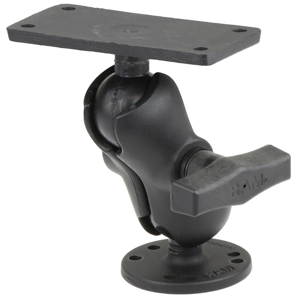 1.5″ Ball Mount with 2.5″ Round Base, Short Arm & 2″ x 4″ Plate for the Humminbird Helix 7 OnlyThe RAM-202-24-B-202U, powder coated marine grade aluminum mount, consists of a short double socket arm mount, one round 2.5″ diameter round base with the universal AMPS hole pattern and one 2″ x 4″ rectangular base. The unique rubber ball and socket technology dampens shock and vibration while offering high adjustibility to achieve the perfect viewing angle.Features: